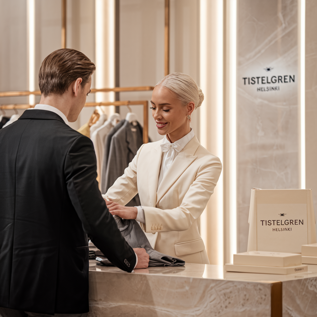 Tistelgren Helsingin tiimi huokuu ammattitaitoa ja eleganssia keskittyen ensiluokkaiseen asiakaspalveluun. Jokainen tiimin jäsen on muodin ja tyylin asiantuntija, joka on sitoutunut tarjoamaan eksklusiivisen ostokokemuksen, joka täydentää myymälän laadukasta ilmettä.